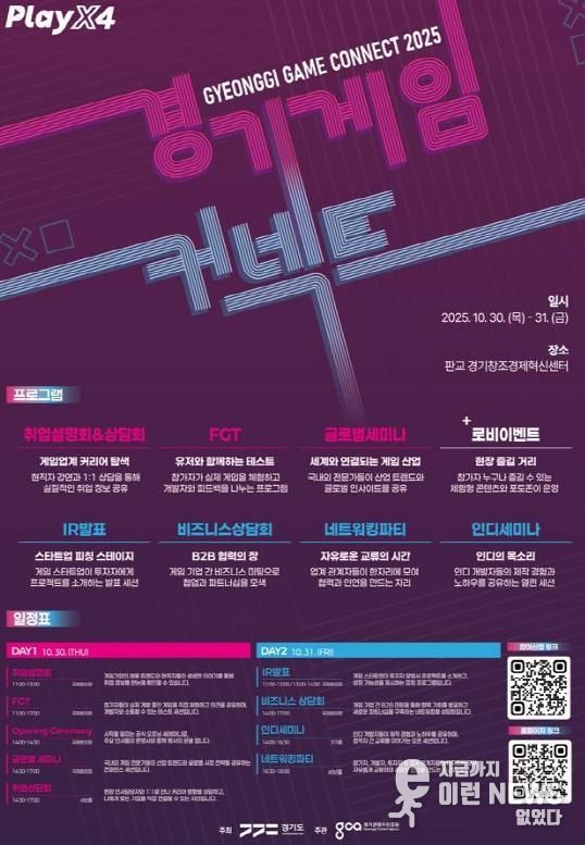 이런뉴스(e-runnews) 김삼성 기자 | 경기도가 오는 30일과 31일 이틀간 판교 경기창조경제혁신센터에서 ‘경기게임커넥트 2025’를 개최한다.