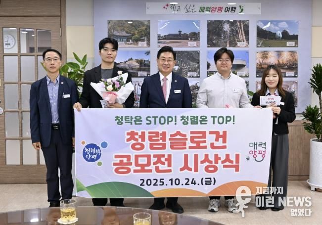 이런뉴스(e-runnews) 김삼성 기자 | 양평군은 지난 24일 ‘2025 청렴 슬로건 시상식’을 개최하고, 공정하고 투명한 공직문화 확산을 위해 추진한 ‘청렴 슬로건 공모전’의 수상작을 발표했다.