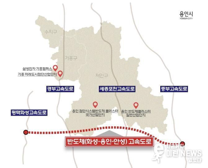 ‘반도체 고속도로’는 이동·남사읍의 첨단시스템반도체 국가산업단지와 원삼면의 용인반도체클러스터를 동서로 연결하는 핵심 산업축으로 경부고속도로, 국토45호선, 포천~세종 고속도로, 중부고속도로와 연결된다.