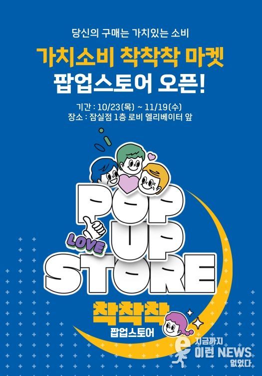 이런뉴스(e-runnews) 김삼성 기자 | 경기도와 경기도주식회사가 운영하는 경기도 공동브랜드 ‘착착착’이 오는 11월 19일까지 4주간(휴점일 제외) 롯데마트 잠실점 1층 행사장에서 ‘가치소비 착착착 마켓’ 팝업행사로 소비자를 찾아간다.