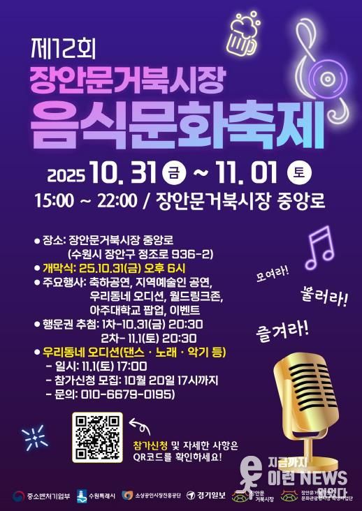 이런뉴스(e-runnews) 김삼성 기자 | 수원 장안문거북시장 중앙로에서 10월 31일부터 11월 1일까지 ‘제12회 장안문거북시장 음식문화축제’가 열린다.