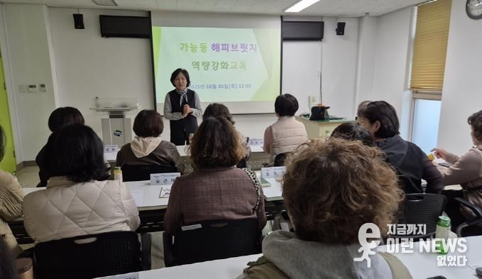 이런뉴스(e-runnews) 김삼성 기자 | 의정부시 가능동주민센터는 10월 30일 지역사회 복지 인적안전망 강화를 위해 ‘가능동 해피브릿지 복지 사각지대 발굴 교육’을 실시했다.
