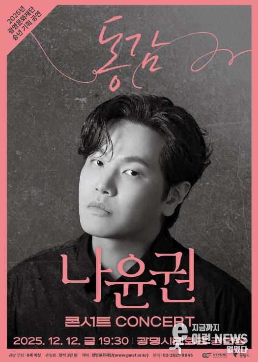 이런뉴스(e-runnews) 김삼성 기자 | (재)광명문화재단은 송년 기획 공연으로 나윤권 콘서트 '동감'을 오는 12월 12일 오후 7시 30분 광명시민회관 공연장에서 선보인다.