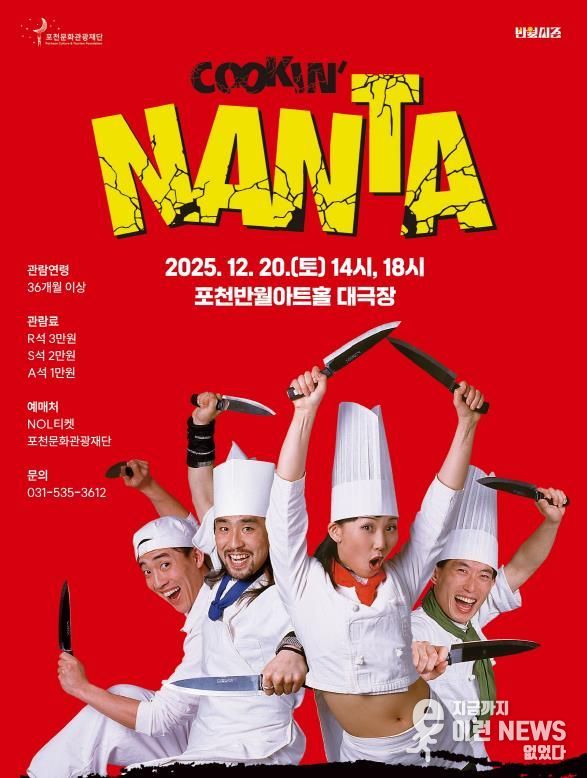 이런뉴스(e-runnews) 김삼성 기자 | 포천문화관광재단은 오는 12월 20일 포천반월아트홀 대극장에서 대한민국 대표 비언어 퍼포먼스 ‘난타(NANTA)’ 공연을 개최한다.