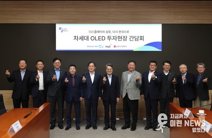 파주 LG디스플레이 R&D동에서 열린 ‘차세대 OLED 투자현장 간담회’에는 김경일 파주시장을 비롯해 박정 국회의원, 안명규·이용욱 도의원, LG디스플레이와 주요 협력사 대표 등 30여 명이 참석했다.