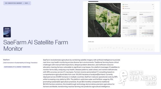 이 기술은 내년 1월 열리는 CES 2026에서 ‘SaeFarm AI Satellite Farm Monitor(새팜 농림위성 인공지능 분석)’ 서비스로 출품돼 공개될 예정이다.