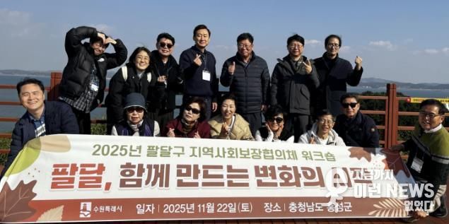 이런뉴스(e-runnews) 김삼성 기자 | 수원시 팔달구는 지난 22일, 팔달구 지역사회보장협의체, 사통팔달협의회, 상인회 등 민·관 관계자 20여 명과 함께 충청남도 홍성군 남당항 일대에서 ‘2025년 팔달구 지역사회보장협의체 가을 워크숍’을 추진했다고 밝혔다.