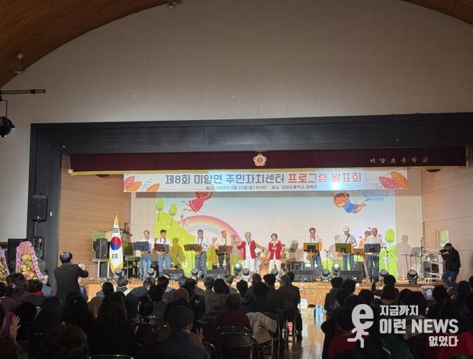 미양면 주민자치위원회가 주관한 이날 발표회는 밴드, 노래, 건강체조, 실버댄스, 몸살림운동, 요가, 민화 7개 프로그램 수강생들이 그동안 갈고닦은 실력을 펼치는 무대 및 전시로 꾸며져 주민들의 뜨거운 호응을 얻었다.
