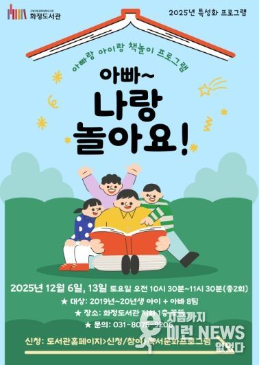 이런뉴스(e-runnews) 김삼성 기자 | 고양특례시 화정도서관은 오는 12월 6일, 13일 오전 10시 30분, 화정도서관 지하 1층 꽃뜰에서 특성화 프로그램 ‘아빠~ 나랑 놀아요!'를 운영한다.