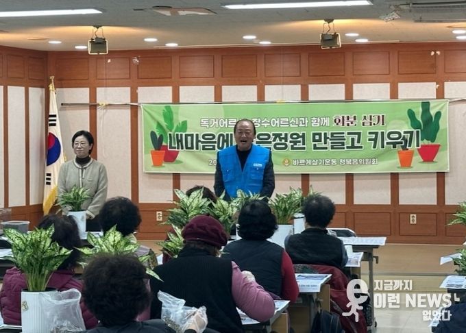 이런뉴스(e-runnews) 김삼성 기자 | 평택시 청북읍 바르게살기운동 청북읍 위원회는 지난 25일 청북읍 행정복지센터 대회의실에서 홀몸 어르신, 장수 어르신을 모시고 화분 심기 행사를 개최했다.