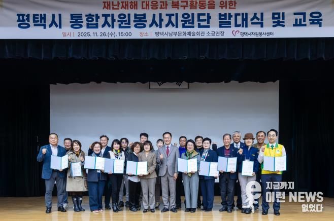 이런뉴스(e-runnews) 김삼성 기자 | 평택시는 지난 26일 남부문예회관 소공연장에서 21개 자원봉사 단체가 참여한 가운데 ‘평택시 통합자원봉사지원단’발대식을 개최하고, 대규모 재난 발생 시 신속한 긴급 대응 체계를 본격 가동한다고 밝혔다.