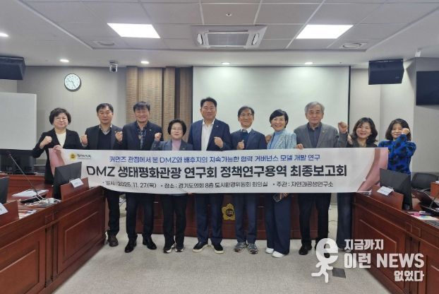 이런뉴스(e-runnews) 김삼성 기자 | 경기도의회 의원연구단체인 DMZ생태평화관광 연구회(회장 오준환 의원)는 지난 27일 경기도의회 도시환경위원회 회의실에서 '커먼즈 관점에서 본 DMZ와 배후지의 지속가능한 협력 거버넌스 모델 개발 연구' 용역 최종보고회를 개최했다.