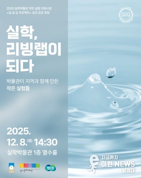 이런뉴스(e-runnews) 김삼성 기자 | 경기문화재단 실학박물관(관장 김필국)이 오는 12월 8일 실학박물관 열수홀에서 ‘2025 실·실·실 프로젝트 성과공유포럼: 실학, 리빙랩이 되다’를 개최한다. 이번 행사는 올해 실학박물관이 지역자원 연계·확산의 일환으로 추진한 ‘2025 작은 실험 지원사업 〈실·실·실 프로젝트〉’의 성과를 한자리에 모아 공유하고, 뮤지엄 리빙랩의 가능성과 방향성을 지역사회와 함께 논의하는 자리다.