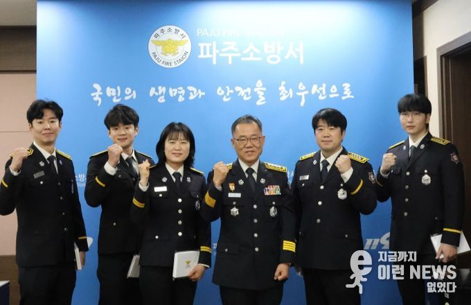 이런뉴스(e-runnews) 김삼성 기자 | 파주소방서는 1일 본서 서장실에서 근속승진 대상자 11명에 대한 계급장 수여식을 실시했다.