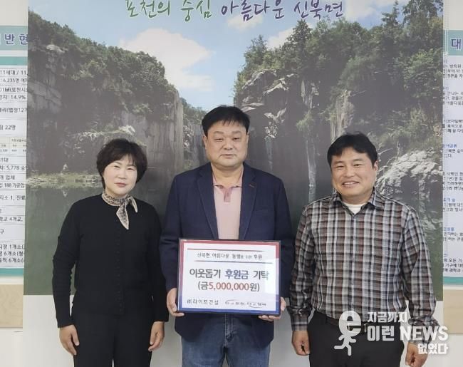 이런뉴스(e-runnews) 김삼성 기자 | 포천시 신북면은 지난 3일 ㈜라이프건설에서 관내 어려움을 겪고 있는 가구와 갑작스러운 위기 상황 등으로 도움이 필요한 가구를 위해 성금 500만 원을 기탁했다고 밝혔다.