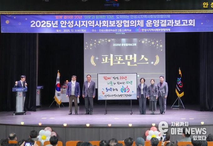 이런뉴스(e-runnews) 김삼성 기자 | 지난 3일, 안성시지역사회보장협의체는 ‘함께 걸어온 20년, 이웃과 함께한 10년, 도약하는 안성시지역사회보장협의체’라는 주제로 2025년 운영결과보고회를 개최했다. 이날 행사에는 안성시지역사회보장협의체 위원, 민간·공공 사회복지 관계자, 읍·면·동장 및 지역사회보장협의체 위원 등 180여 명이 참석했다.