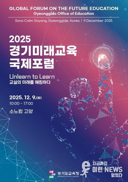 이런뉴스(e-runnews) 김삼성 기자 | 경기도교육청이 오는 9일 소노캄 고양에서 녩경기미래교육 국제포럼’을 개최한다. ‘Unlearn to Learn: 교실의 미래를 해킹하다’를 주제로 전 세계 교육전문가와 함께 ‘미래교육의 새로운 방향’을 모색하고 담론을 선도하고자 마련한 자리다.
