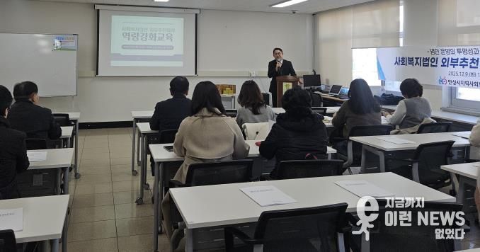 이런뉴스(e-runnews) 김삼성 기자 | 지난 9일, 안성시지역사회보장협의체는 한경국립대학교 산학협력관에서 ‘사회복지법인 외부추천이사 및 후보의 역량강화 교육’을 진행했다.