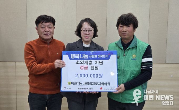 이런뉴스(e-runnews) 김삼성 기자 | 평택시 비전1동 새마을지도자협의회는 지난 11일, 올 한해 다양한 활동을 통해 모금한 성금 200만 원을 취약계층을 위해 사용해달라며, 비전1동 행정복지센터에 기부했다.