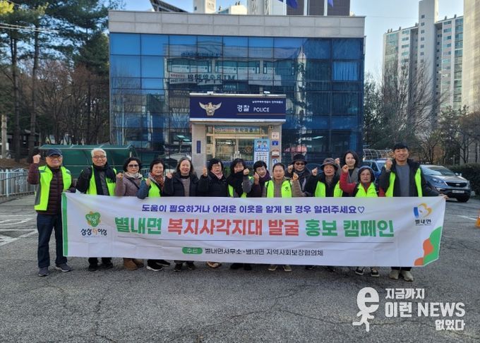 이런뉴스(e-runnews) 김삼성 기자 | 남양주시는 12일 별내면사무소가 별내면 지역사회보장협의체와 함께 위기가구를 조기에 발굴하기 위한 복지 사각지대 발굴 캠페인을 실시했다고 밝혔다.