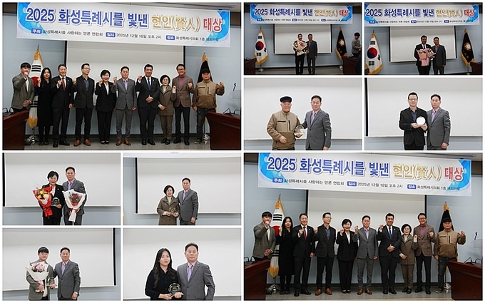 이런뉴스(e-runnews) 김삼성 기자 | 2025 화성특례시를 빛낸 현인 대상 시상식이 18일 오후 화성특례시의회 대회의실에서 개최되며 시상식 문화의 모범을 보였다.