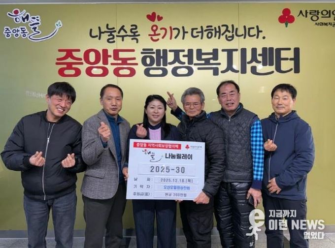 백경희 중앙동장은 “올해도 변함없이 따뜻한 나눔을 실천해 주신 오산오일장상인회에 깊이 감사드린다”며 “기탁해주신 성금은 도움이 필요한 이웃들에게 맞춤형 복지로 연계해 촘촘한 인적·물적 안전망을 구축하는 데 활용하겠다”고 밝혔다.