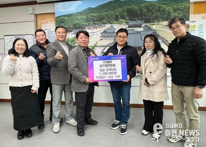 이런뉴스(e-runnews) 김삼성 기자 | 광적면 가래비 상가번영회가 지난 17일 지역 내 취약계층을 돕기 위해 광적면행정복지센터에 온품 캠페인 성금 100만 원을 기부했다.