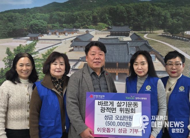 이번 성금은 바르게살기운동 광적면위원회가 ‘양주 회암사지 왕실축제’ 먹거리 판매 부스를 운영해 마련한 수익금으로 마련됐다.