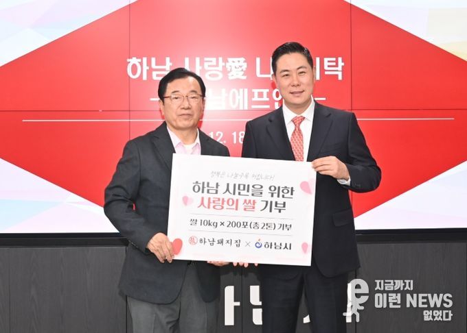 이런뉴스(e-runnews) 김삼성 기자 | 지난 18일, 하남돼지집은 연말을 맞아 취약계층 지원을 위해 백미(10㎏) 200포를 하남시에 기탁했다.