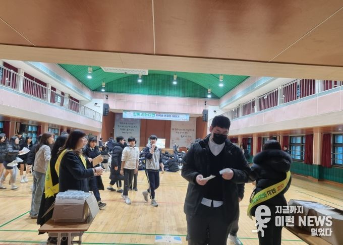 이런뉴스(e-runnews) 김삼성 기자 | 경기도연천교육지원청은 12월 19일, 전곡중학교에서 학생 약 550명을 대상으로 교육환경보호구역 제도 및 마약 예방 홍보 캠페인을 실시했다.