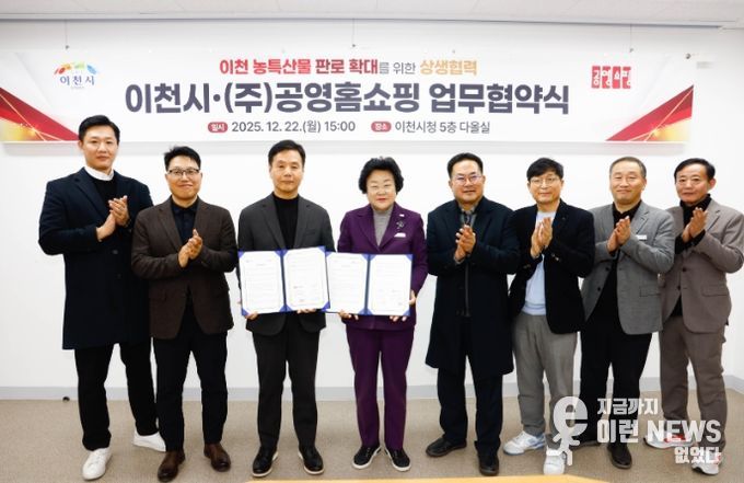이런뉴스(e-runnews) 김삼성 기자 | 이천시는 12월 22일, 공영홈쇼핑과 이천시 농산물 판매 확대를 위한 업무협약(MOU)을 체결하고, 이천쌀을 비롯한 지역 농산물의 안정적인 판로 확대와 브랜드 가치 제고에 나선다고 밝혔다.