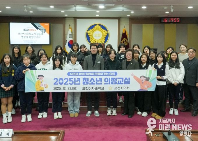 이런뉴스(e-runnews) 김삼성 기자 | 포천시의회는 22일 포천시의회 본회의장에서 포천여자중학교 학생 30여 명을 대상으로 ‘포천시의회 청소년 의정교실’을 개최했다.