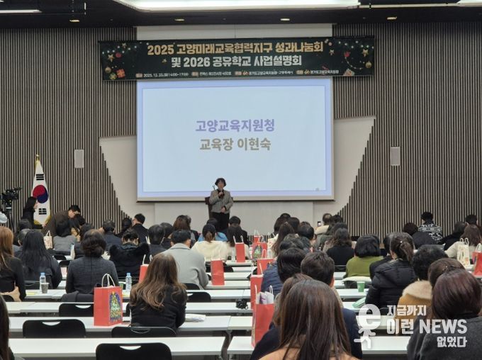 이런뉴스(e-runnews) 김삼성 기자 | 경기도고양교육지원청은 2025년 12월 23일 킨텍스 제2전시장(401~403호)에서‘2025 고양미래교육협력지구 성과나눔회 및 2026 공유학교 사업설명회’를 개최했다. 이날 행사에는 고양 관내 유·초·중·고 교사, 학교관리자, 학생, 협력 마을활동가 등 총 400여 명이 참석해 고양교육의 미래를 함께 모색했다.