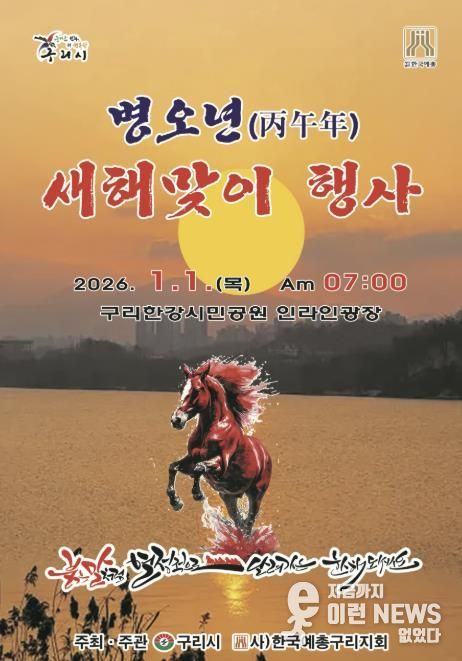 이런뉴스(e-runnews) 김삼성 기자 | 구리시는 오는 2026년 1월 1일 오전 7시, 구리한강시민공원 인라인 광장에서 ‘2026 병오년(丙午年) 새해맞이 행사’를 개최한다. 이번 행사는 시민들과 함께 새해 첫 해돋이를 맞으며 희망과 화합의 마음을 나누기 위해 마련됐다.