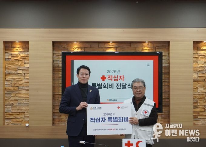 이런뉴스(e-runnews) 김삼성 기자 | 포천시의회는 24일 포천시의회 2층 의원회의실에서 2026년도 적십자 특별회비를 전달하며 따뜻한 나눔 문화 확산에 동참했다.