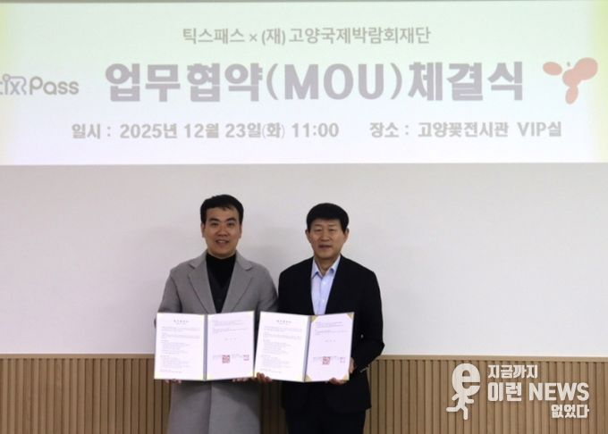 이런뉴스(e-runnews) 김삼성 기자 | (재)고양국제박람회재단은 지난 23일 고양꽃전시관에서 틱스패스 주식회사와 2026고양국제꽃박람회 모바일 입장권 도입을 위한 업무협약을 체결했다고 밝혔다.