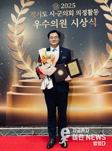이런뉴스(e-runnews) 김삼성 기자 | 이종문 부천시의원(진보당, 약대동·중1·2·3·4동)이 24일 오후, 동두천시의회에서 열린 ‘경기도 시·군의회 의정활동 우수의원 시상식’에서 의정활동 우수의원상을 수상했다. 우수의원상은 경기도시군의회의장 협의회에서 주관하며, 경기도시군의회의장협의회장이 수여한다. 이 의원은 의정봉사분야에서 모범적인 의정활동을 펼친 공로로 수상의 영예를 안았다.
