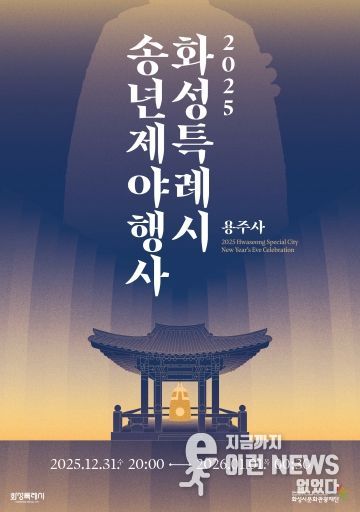이런뉴스(e-runnews) 김삼성 기자 | (재)화성시문화관광재단은 시민과 함께 2025년을 마무리하고 2026년을 맞이하는 '2025 화성특례시 송년 제야행사'를 오는 12월 31일 수요일 오후 8시부터 용주사 일원에서 개최한다.