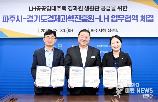 이런뉴스(e-runnews) 김삼성 기자 | 파주시는 30일 경기도경제과학진흥원, 한국토지주택공사 경기북부지역본부와 경과원 파주시 이전에 따른 엘에이치(LH) 공공임대주택 생활관 지원을 위한 업무협약을 체결했다고 밝혔다.