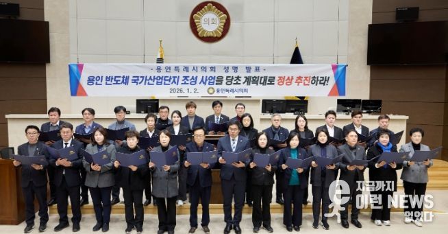 이런뉴스(e-runnews) 김삼성 기자 | 용인특례시의회는 2일 본회의장에서 ‘국가 경쟁력 강화 및 첨단 전략산업 육성을 위한 용인 반도체 국가산업단지 조성 사업 관철 성명서’를 발표하고, 사업의 당초 계획에 따른 정상 추진을 정부에 강력히 촉구했다.