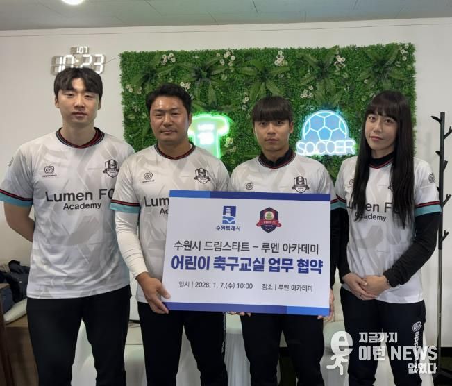 수원시는 7일 루멘 아카데미와 ‘드림스타트 아동을 위한 축구 강습 지원 협약’을 체결하고, 수원시 드림스타트 아동의 건강한 성장과 발달을 위해 협력하기로 했다.