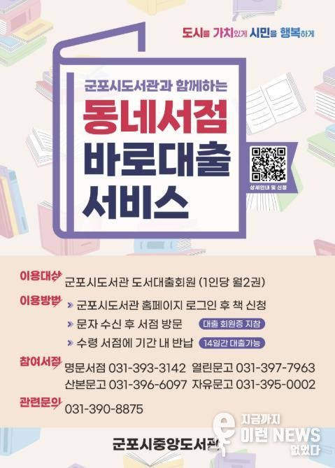 이런뉴스(e-runnews) 김삼성 기자 | 군포시도서관은 1월 2일부터 ‘2026년 동네서점 바로대출 서비스’ 운영을 재개한다고 밝혔다.