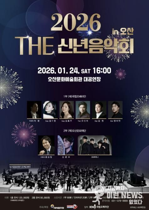 이런뉴스(e-runnews) 김삼성 기자 | (재)오산문화재단은 2026년 1월 24일 오후 4시, 오산문화예술회관 대공연장에서 '2026 THE 신년음악회 in 오산'을 개최하며 시민들에게 새해 첫 문화 인사를 전한다.