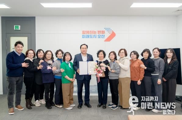 이런뉴스(e-runnews) 김삼성 기자 | 오산시는 지난 9일, 제15기 국민추천포상에서 국무총리 표창을 수상한 ‘이스트 봉사단’에 상장을 전달하고 봉사자들을 격려했다고 밝혔다. 이스트 봉사단은 앞서 지난 1월 2일 청와대 영빈관에서 열린 시상식에서 국무총리 표창을 수상한 바 있다.