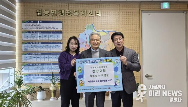 기독교 대한감리회 청안교회는 2026년 1월 12일, 점동면행정복지센터를 직접 방문해 이웃돕기 성금 100만 원을 기탁하며 새해 지역사회 나눔의 문을 가장 먼저 열었다.