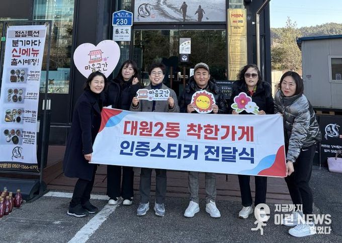 이런뉴스(e-runnews) 김삼성 기자 | 오산시 대원2동 행정복지센터는 지난 13일, 2026년 첫 번째 착한가게로 신규 선정된 ‘양심장어 오산청호점(엘지로 230)’에서 ‘착한날개(착한가게) 인증스티커 전달식’을 개최했다고 밝혔다.
