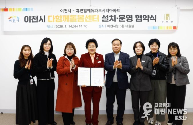 이런뉴스(e-runnews) 김삼성 기자 | 이천시는 지난 14일 시청에서 휴먼빌에듀파크시티아파트와 단지 내 ‘다함께돌봄센터 설치·운영을 위한 업무 협약’을 체결했다고 밝혔다. 이날 협약식에는 이도아 입주자 대표회의 회장을 비롯한 관계자들이 참석했다.