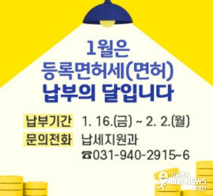 파주시 관계자는 “등록면허세(면허)는 비교적 소액이어서 납부를 놓치는 경우가 많다”라며, “납부기한이 경과하면 부과 금액의 3%에 해당하는 납부지연 가산세가 추가되므로 반드시 기한 내 납부해 주시길 바란다”라고 당부했다.
