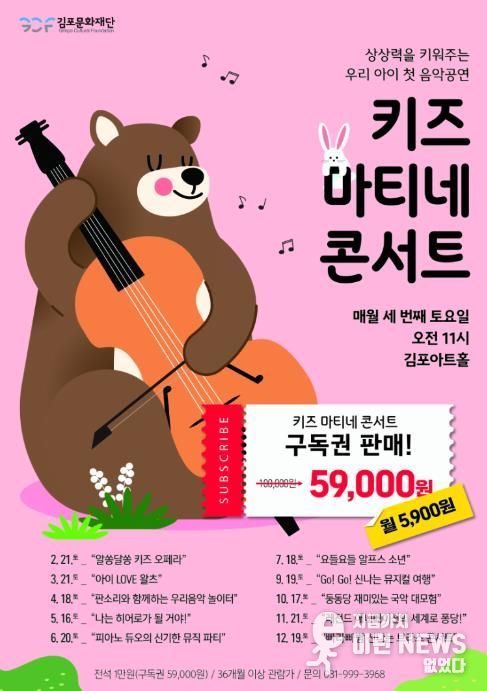 이런뉴스(e-runnews) 김삼성 기자 | (재)김포문화재단은 2025년도 객석점유율 99%, 2024~2025 2년 연속 관객만족도 98점을 달성한 '키즈 마티네 콘서트'를 2026년에도 연속하여 개최한다고 밝혔다.