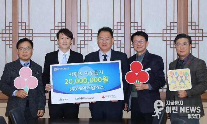이런뉴스(e-runnews) 김삼성 기자 | ㈜에이치알에스는 지난 15일 평택시청 대외협력실에서 평택행복나눔본부에 이웃돕기 성금 2천만 원을 전달했다.